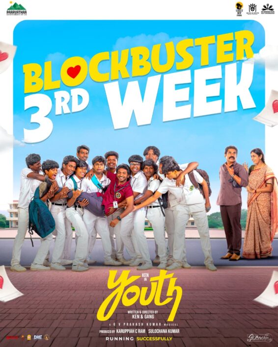 பார்வதா என்டர்மெய்ன்மென்ட் நிறுவனம் சார்பில் கருப்பையா சி. ராம் தயாரிப்பில், கென் கருணாஸ் நாயகனாக நடித்து இயக்க, பள்ளி பருவ வாழ்க்கையை மையமாக கொண்டு கடந்த மார்ச் 19-ஆம் தேதி வெளியான ’யூத்’ மிகப்பெரிய வரவேற்பு பெற்றுள்ளது. ரசிகர்கள் மற்றும் திரை ஆர்வலர்களிடம் பலத்த பாராட்டுக்களைப் பெற்ற இப்படம் ரூ.50 கோடி வசூலைக் கடந்து பல திரையரங்குகளில் அரங்கம் நிறைந்த காட்சிகளாக ஓடிக்கொண்டிருக்கிறது.